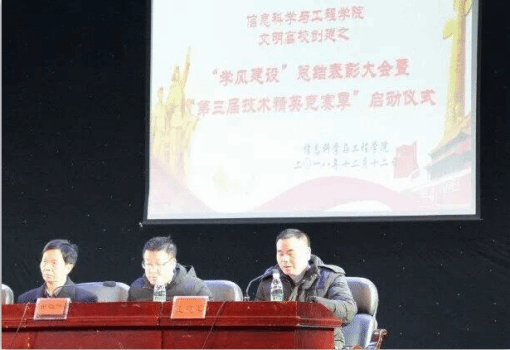 (通讯员 丁姣 邓力超)为全面创建文明高校,营造良好学习氛围,实现打造“技术精英”的办学目标,促进学生德智体美全面发展,巩固学院优良学风,同时推动学院体育教育工作的发展,12月12日下午6点40分信息科学与工程学院于实验剧场召开了“学风建设工程”总结表彰暨第三届“技术精英竞赛季”动员大会。校长助理、信息科学与工程学院院长李勇帆,党总支书记王杰文、副院长田祖伟、王建军,党总支副书记易利,学工办主任关红儒,学工办老师唐瑞鸿、叶晶应邀出席大会。学院16-18级学生代表、共产党员及田径运动员参与大会。会议由关红儒主持。