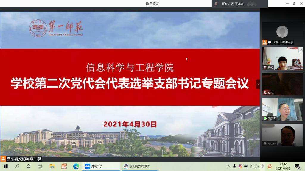 晚上19时30分,学院党总支借助腾讯会议平台召开了支部书记会议,党员学院领导、党总支委员、支部书记参加,会议由党总支副书记成夏炎主持。首先,党总支书记王杰文传达了学校、学院相关会议精神,简要介绍了本次党代会的背景、意义和任务,特别强调了代表选举纪律和要求。接着,成夏炎对必赢官网选举党代表进行了部署。