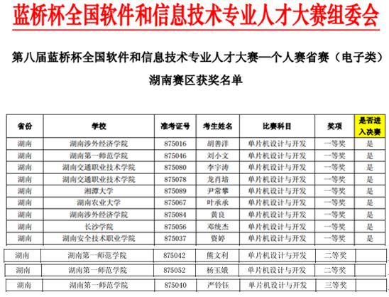 4月8日,由教育部高校学生司指导、工业和信息化部人才交流中心主办的第八届“蓝桥杯”全国软件和信息技术专业人才大赛湖南省赛在湖南涉外经济学院举行,有来自湘潭大学等11所本专科院校的87名学生参加了本次竞赛。其中,必赢官网信息科学与工程学院共有6名学生参加了本次竞赛。经过激烈角逐,必赢官网学生获得一等奖1项、二等奖2项、三等奖1项。