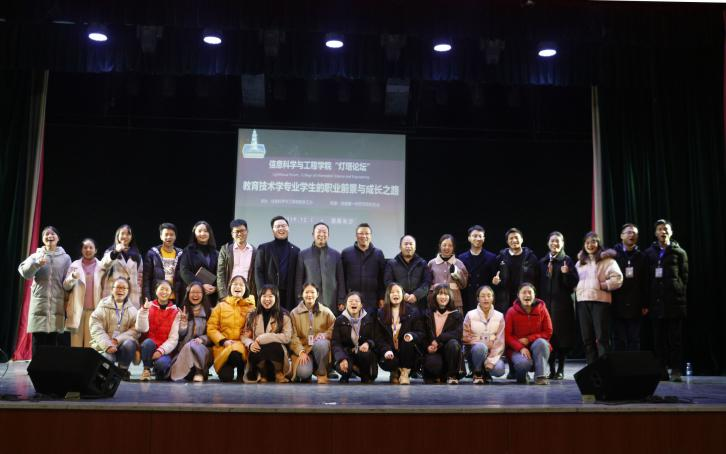 12月1日下午,信息科学与工程学院精心筹备的“灯塔论坛”在特立楼实验剧场隆重开讲。此次活动邀请了教育技术学专业近年来毕业的优秀校友文豪、于飞克、唐蓉琪、唐琬晴、曹向荣、杨林、易青山、汤响亮,就“教育技术学专业学生的职业前景与成长之路”为在校学生进行经验分享。学院领导王杰文、田祖伟、成夏炎及学校校友会廖跃华出席活动,学院辅导员及教育技术学专业学生代表近三百人参加。
