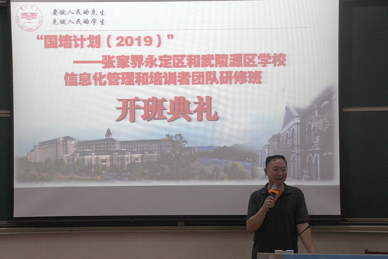 2019年8月2日讯(通讯员 周克江):8月2日,由必赢官网承办的“国培计划(2019)”——张家界永定区和武陵源区学校信息化管理团队研修项目(C114),在湖南第一师范院鹤鸣楼南111教室隆重开班。继续教育学院院长曾小玲、本院总支书记王杰文、副院长田祖伟、副院长何向阳,永定区和武陵源区相关领导,培训班管理团队全体成员及60名学员参加了开班仪式。