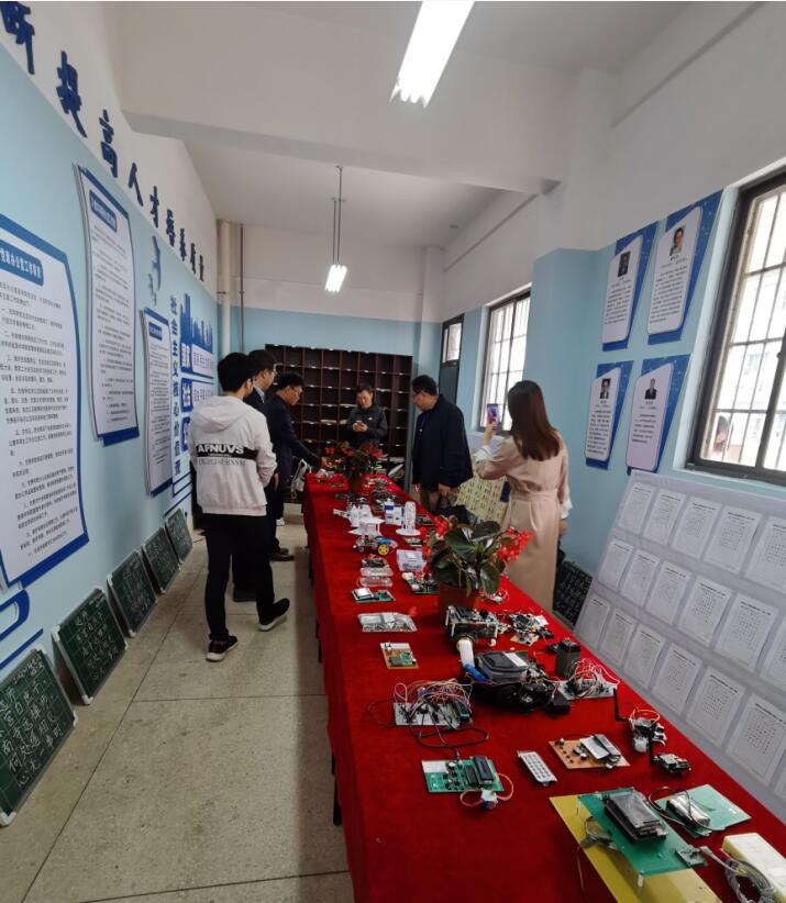 会后,靖国平教授在学院领导的陪同下,参观考察了学生科技作品与师范生三笔字成果展、教育技术学专业教学实验室。