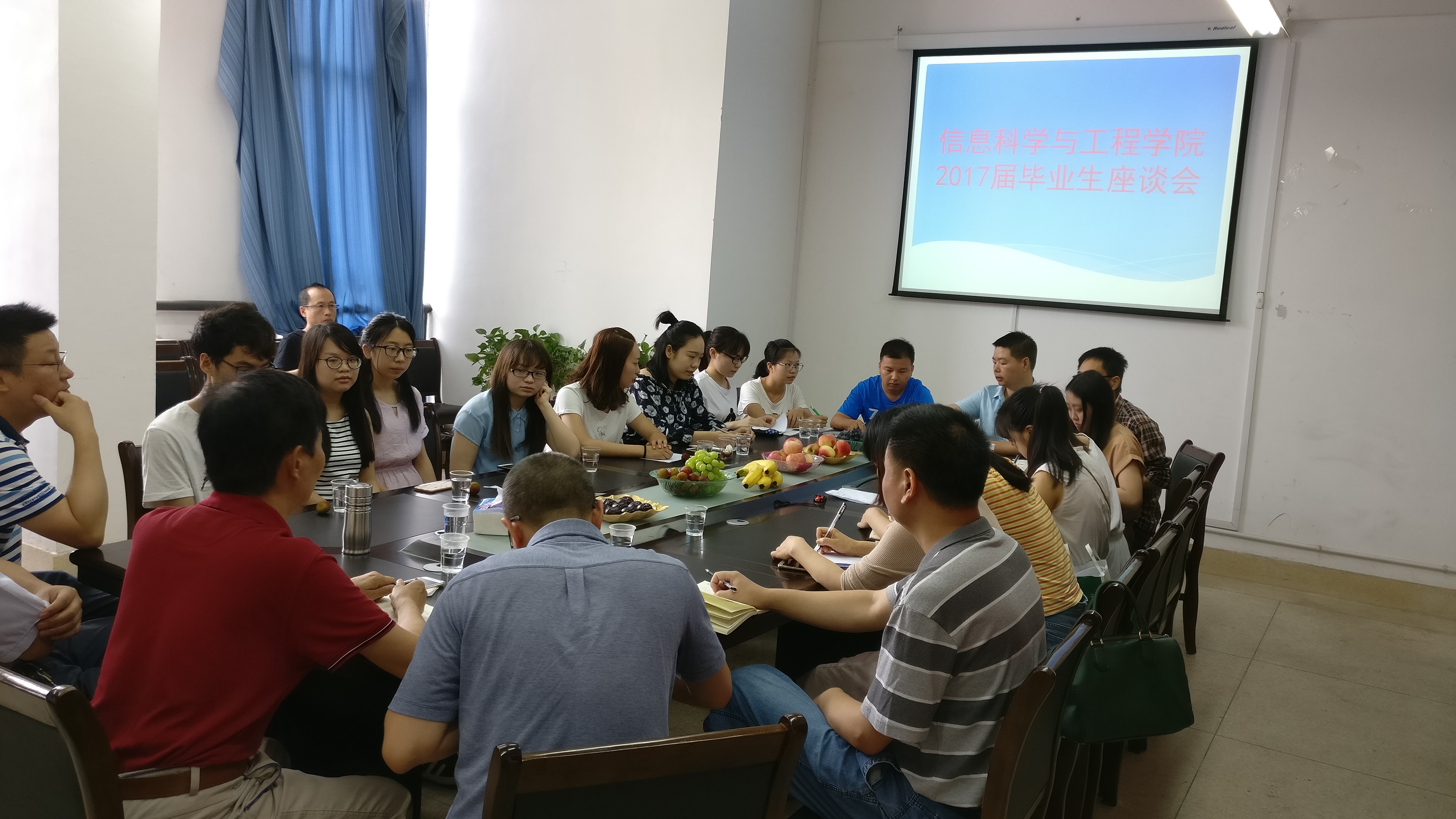 (通讯员 袁思思 冯靖雯) 2017年6月19日上午9点,信息科学与工程学院于学院会议室召开2017届毕业生交流座谈会。校长助理、信息科学与工程学院院长李勇帆,学院党总支书记王杰文,副院长田祖伟、王建军,副书记罗祥云、各教研室主任、学生辅导员关红儒及各班毕业生代表围绕学院学风建设教学工作以及学生管理等方面展开了讨论。
