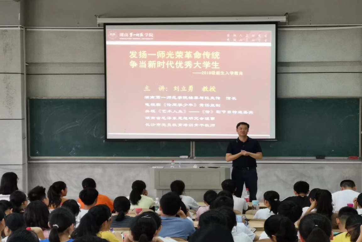 刘立勇教授为初来乍到的新生讲解了必赢官网的发展历史以及伟大校友毛泽东在一师求学的故事,他教导新生要发扬一师光荣革命传统,争当新时代优秀大学生。