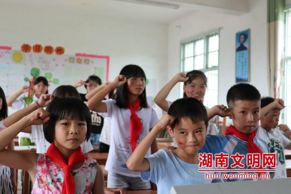 握紧小小的拳头,表达自己保卫母亲河的决心。图片来源:湖南文明网 通讯员 高顺年 摄 必赢国际437官网信息科学与工程学院师生18人组成“新时代E路行”教育帮扶关爱团赴郴州市汝城县文明瑶族乡第一片小学校,于7月8日至7月21日开展支教、调研实践活动。 为庆祝中国共产党成立97周年、纪念改革开放40周年,深化农村儿童思想道德建设,帮助其“扣好人生的第一粒扣子”,新航向梦之队于7月13日至7月21日开展了以“童心向党”为主题的系列课程,涵盖“五星红旗”美术课、“红旗飘扬”手工课、“红色少年”舞蹈课、“红星闪闪”音乐课和“歌颂母亲河”普通话课引导农村儿童知党爱党、听党话跟党走,努力成长为担当民族复兴大任的时代新人。 “五星红旗”美术课和“红旗飘扬”手工课上,队员为孩子们讲解国旗故事,带领大家一起手绘国旗,让他们领会五星红旗背后的意义,将革命传统文化搬进课堂。 “红色少年”舞蹈课和“红星闪闪”音乐课上,队员介绍了五星红旗的诞生和含义,带领孩子们用舞蹈动作和歌声表达自己对“五星红旗”的崇敬之情,在孩子们幼小的心灵上种下一棵爱旗爱党的种子引导孩子们爱党、敬党。 在普通话课上,队员带领孩子们声情并茂的朗诵诗歌《母亲河,红领巾为你歌唱》,同学们用清晰的语言,响亮的声音,加上老师引入的动作,把诗歌有感情地表达出来,准确的传达诗歌的思想内容。 此次红色主题课程活动,新航向梦之队队员们围绕“童心向党”,紧扣爱党爱国爱社会主义主题,通过美术、手工、舞蹈、音乐和普通话课等丰富多彩的红色主题课程,寓教于乐引导农村儿童德、智、体、美、劳全面发展,培养农村儿童心向党、跟党走的坚定信念。 |