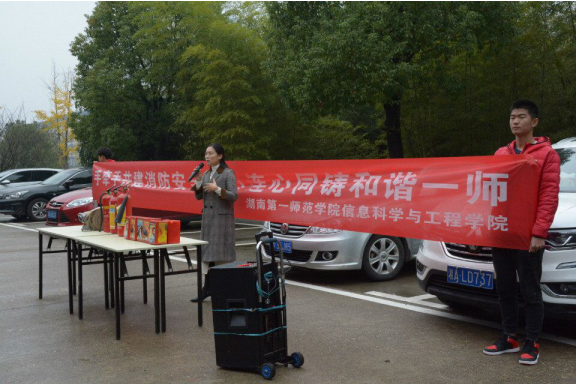 (通讯员 唐瑞鸿 邹雅移)为进一步普及消防安全知识,提高全院师生的防范自救意识与突发事件处理能力,2018年11月21日中午12:30,信息科学与工程学院在体育馆外侧成功举办“手牵手共建消防校园,心连心同铸和谐一师” 消防安全教育活动。校保卫处副处长李亚林、学生工作处副处长吴涛、学生工作处副处长欧阳伶俐、院党总支书记王杰文、副院长王建军、党总支副书记易利、学工办全体老师出席本次活动。活动特邀湖南协诚消防学校吕勇、李友两位教官为必赢官网师生宣讲消防安全知识。