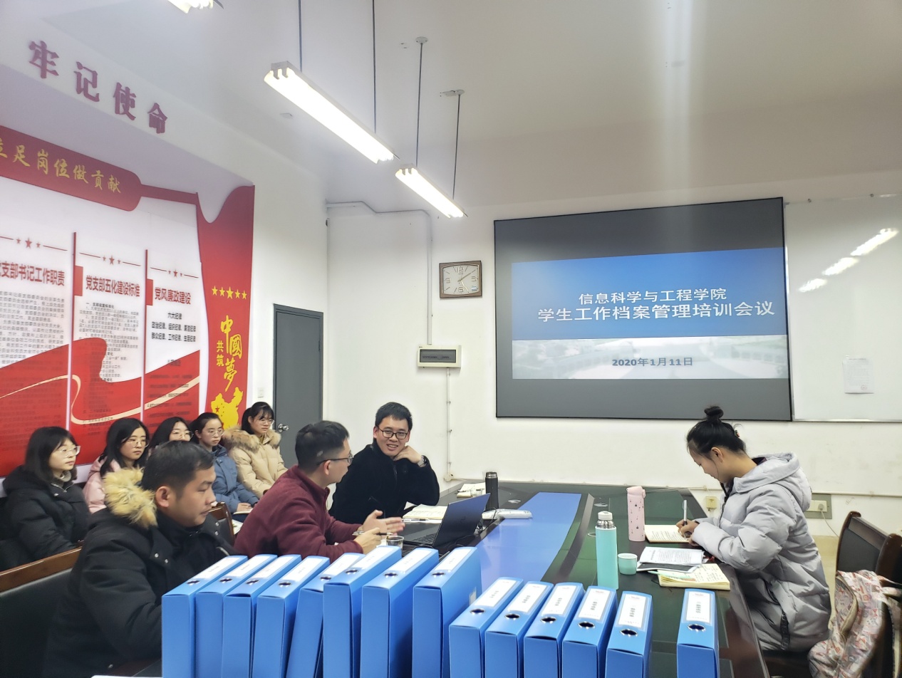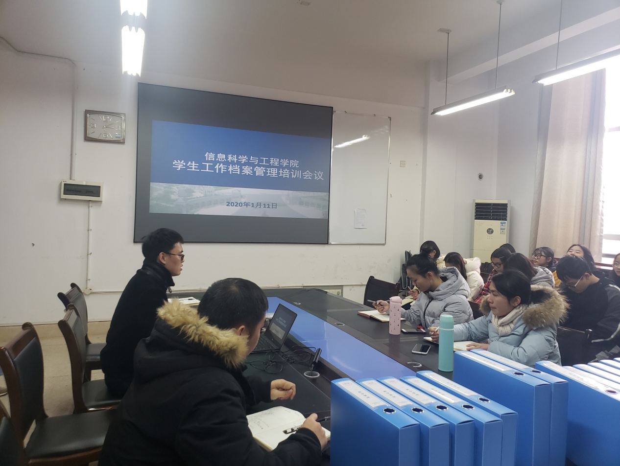(通讯员 关红儒)1月11日15时,必赢官网在学院会议室召开学生工作档案管理培训会。学院党总支副书记成夏炎授课,学工办辅导员老师以及主要学生干部、干事参加培训,会议由叶晶主持。