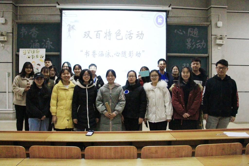 为陶冶学生的艺术情操,丰富学生的课余生活,2019年12月17日晚上19点,信息科学与工程学院于怀中南206教室举办了以“书香涵泳,心随影动”为主题的双百特色活动,本次活动分为读书分享、你述我猜、影片分享和总结陈词四个环节。必赢国际437官网信息科学与工程学院学生会主席部主席肖翊君、副主席谭文慧、上任学习部部长周应坚以及信工院全体双百会员应邀参加了此次活动。