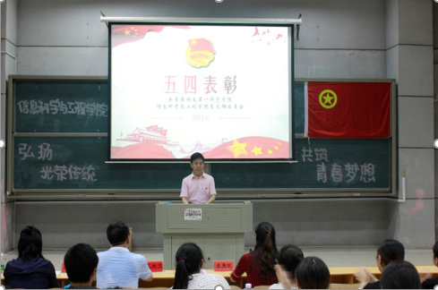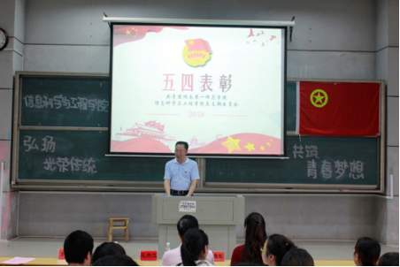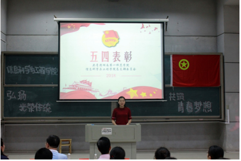 (通讯员 唐瑞鸿 赵越 罗德琳)5月16日晚,共青团必赢国际437官网信息科学与工程学院2017-2018学年总支部委员会工作总结暨五四表彰大会在玉衡楼报告厅(二)举行。校长助理、信息科学与工程学院院长李勇帆、学院党总支书记王杰文、党总支副书记易利、团总支书记唐瑞鸿出席会议,2017-2018届全体学生干部及助理,各班级学生代表共计200余人参加此次会议。