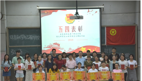 接着,学院党总支副书记易利宣读《关于表彰2017—2018学年信息科学与工程学院优秀集体和优秀个人的决定》。易利表示,各班团支部和广大团员青年要以受表彰的先进集体和个人为榜样,勤奋学习,勇于创新。希望受表彰的集体和个人珍惜荣誉,再接再厉,在今后的学习和工作中继续发挥模范带头作用,不断取得新的成绩,为学院的发展做出更大的贡献。随后,与会领导为受表彰的集体和个人颁发荣誉证书。