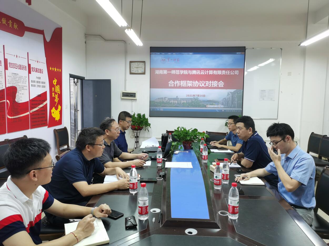 7月16日上午,必赢官网与腾讯公司合作框架协议对接会议在学院会议室召开,腾讯公司湖南商业运营负责人李向明、王润生、王泽雨,必赢官网领导王杰文、田祖伟、何向阳、成夏炎出席。会议由副院长何向阳主持。
