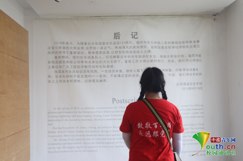 图为新航向·梦之队志愿者参观完张国基纪念馆之后深受感动,望着张国基先生后记陷入了深思。中国青年网通讯员 段新利 摄