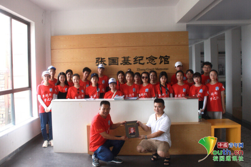 图为张国基纪念馆老师将《张国基纪念册》赠与新航向·梦之队。中国青年网通讯员 欧阳健 摄