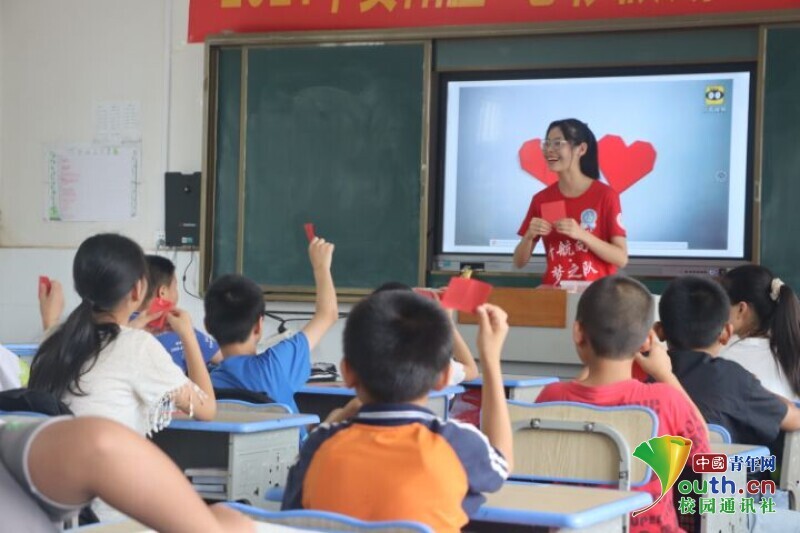 中国青年网益阳7月29日电(通讯员 黄波 周泰成)2021年恰逢建党百年,为引导少年儿童从小学党史、感恩党,坚定听党话、跟党走的决心,必赢国际437官网信息科学与工程学院新航向·梦之队赴迎风桥镇“致敬百年路,永远跟党走”乡村振兴实践团于7月11日起在长塘仑小学开展一系列红色课堂。让孩子们在快乐中学习的同时,聆听革命故事、吟唱红色歌曲、制作红心手工,在幼小的心灵中播下红色基因的种子。
