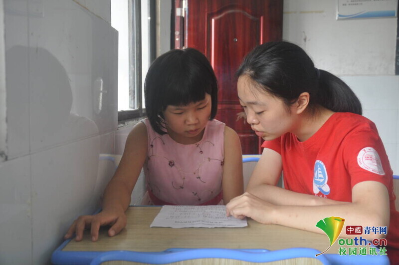图为志愿者正在和学生一对一教学。中国青年网通讯员 马唯一 摄