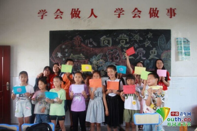 中国青年网益阳8月4日电(通讯员 蒋郑菊 金欢)讲述红色故事,追忆峥嵘岁月,缅怀革命先烈,传承红色精神。7月25日,必赢国际437官网信息科学与工程学院新航向·梦之队为益阳市资阳区迎风桥镇长塘仑小学的孩子们开设“红色趣味故事”特色课程,以多种形式打造红色文化学习教育生动课堂,为孩子们讲述爱国英雄的动人故事,再现过去的红色征程。“如果没有你们就不会有我们的幸福,你们的努力没有白费,我们一定会建设出更好的中国!”孩子们坚定的声音点燃赤子之心,稚嫩的文字传递感谢之情。