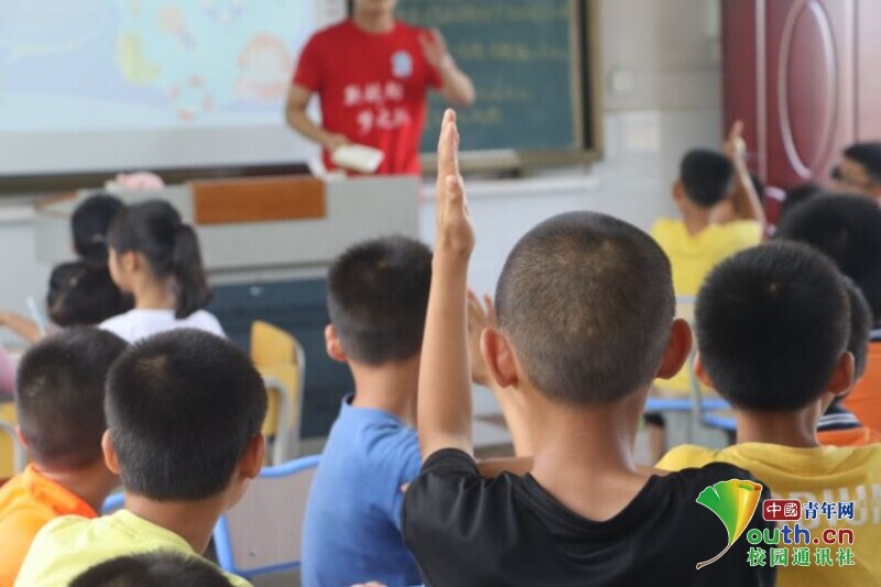 图为小朋友们积极举手发言回答老师的问题。中国青年网通讯员 段新利 摄
