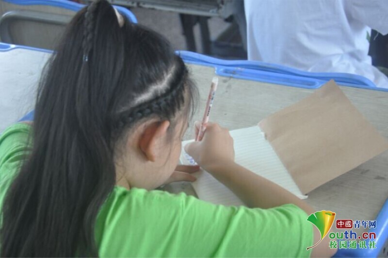 图为小朋友们认真记录课堂笔记。中国青年网通讯员 段新利 摄