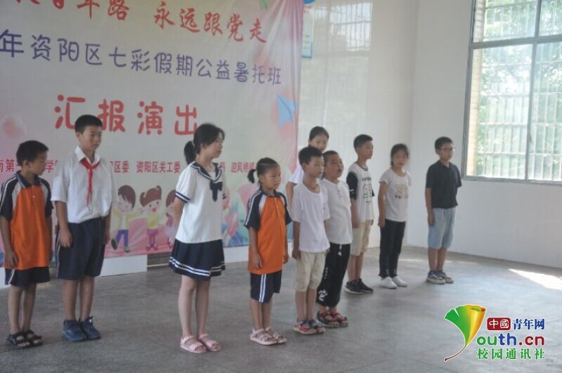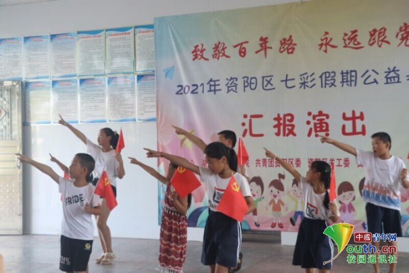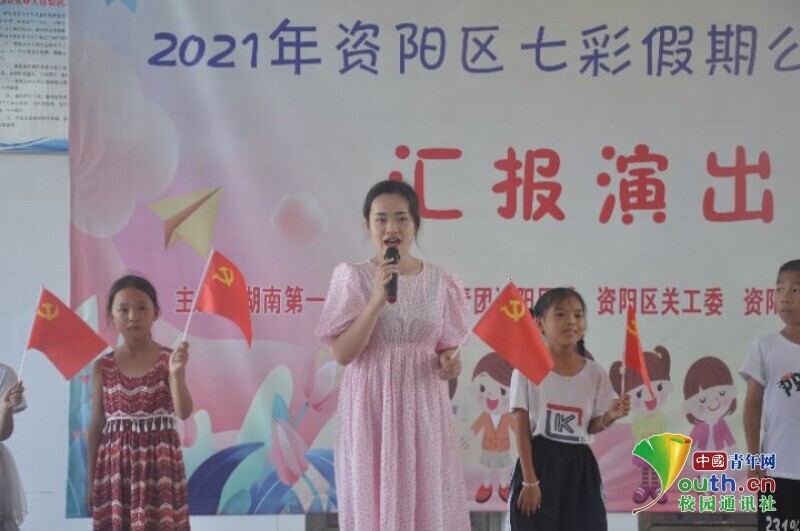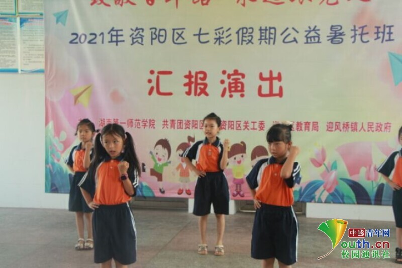 中国青年网益阳8月11日电(通讯员 黄波 张航行)为展示必赢国际437官网信息科学与工程学院新航向·梦之队赴迎风桥镇乡村振兴实践团到益阳市资阳区迎风桥镇长塘仑小学暑期“三下乡”社会实践成果,志愿者开展以“致敬百年路,永远跟党走”为主题的艺文汇演活动。7月24日,全体学生以及队员做好充分表演准备,在上午九点准时开展文艺汇演活动。队员们用一场精彩纷呈的文艺汇演为此次长达半个月的支教画上了圆满的句号。