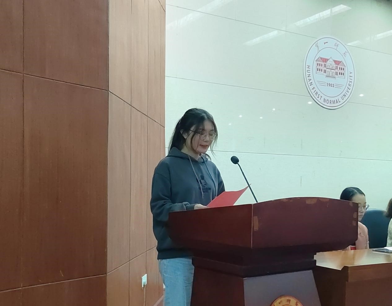 典礼在激昂的国际歌中拉开序幕。首先是学员代表刘益安、袁晓宇发言,她们表示积极分子应发扬先吃苦,再享受的精神,在同学中起到模范带头作用,努力向党组织靠拢。