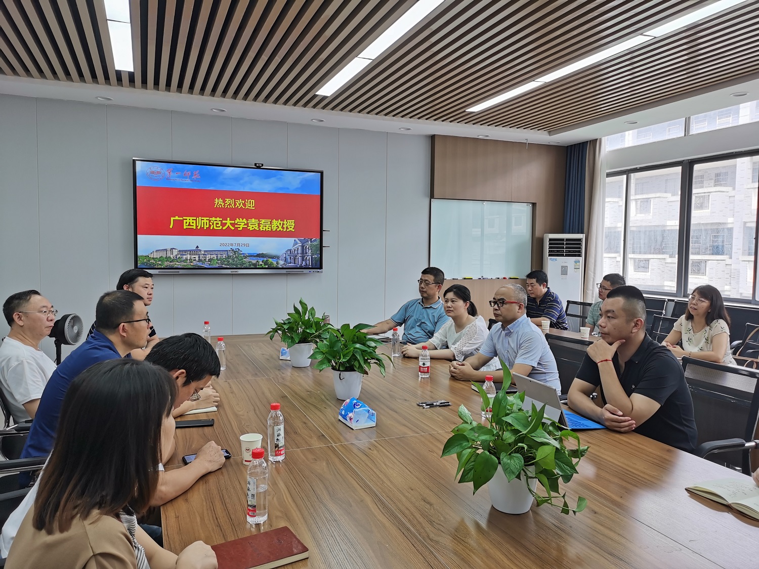 7月29日上午,广西师范大学教授、博士生导师,广西基础教育研究院常务副院长袁磊教授应邀来我院在玉衡楼406会议室开展一流专业建设经验交流会。广西师范大学苏瑞博士、湖南师范大学简婕博士、学院行政班子成员、部分教师参加此次交流活动,活动由副院长何向阳主持。